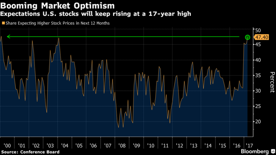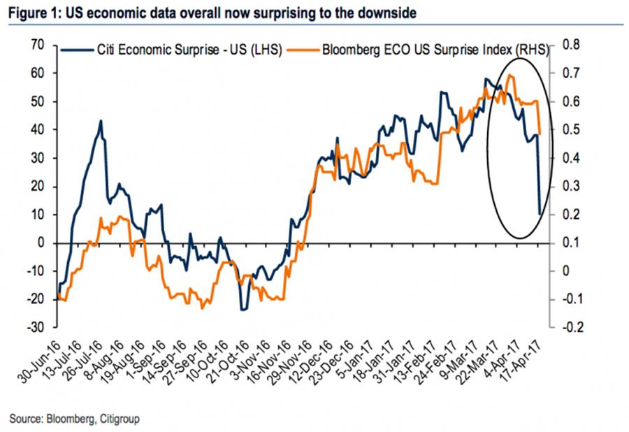 There is a nuanced, yet significant, difference between how risk and uncertainty are understood and priced into markets.  As asset managers, we are tasked with quantifying and managing risk every day in an uncertain world.  While we don’t know what will happen next, we have a sense of the probabilities and the statistical distribution of possible outcomes.  However, we are at a point in time where the global order is changing (in many ways paralleling what happened before World War I) and where there is more uncertainty.  It is a period of time where risk cannot be quantified because we simply don’t know what the probabilities are or what choices are even on the table.  From North Korea to Syria and from the French elections to Brexit, there is a lot of uncertainty from political outsiders and also from an absence of any coordinated policy and leadership.  The fact that volatility remains muted, suggests that markets are oddly comfortable with what they view as the risk of certain outcomes.  If the past year has proven anything, it’s that uncertainty and Black Swan events happen more often than we think and when markets reassess risk, it can be quick and painful. This brings us back to the divergence between sentiment and economic data and output.  While the mood amongst investors and consumers is positive regarding stimulus, there remains a high degree of uncertainty about timing and actual policy.  With expectations set so high, markets should prepare for some surprises to the downside and to quote Art Cashin, investors should “stay wary, alert and very, very nimble.”
