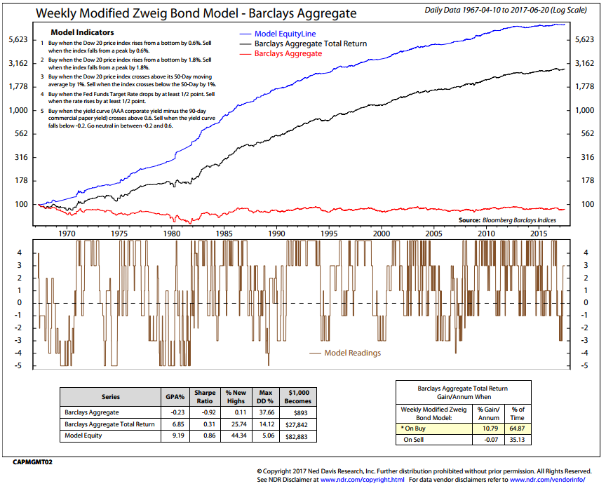 - How you can calculate the model on your own – detailed in the upper left section of chart. How to Track the Zweig Bond Model. Click here for more info about the Zweig Bond Model.